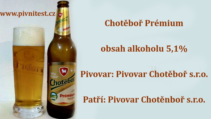 Při šmejdění po pivním krámku mě padlo do oka Chotěbořské pivko, které se honosí slůvkem Prémium. Moc dobře si vybavuji, jak jsem se již u jiné značky spálil a prémiják se nedal skoro polknout, ale poruším pořekadlo a vstoupím podruhé do téže řeky. Snad se nezmění jen název pivovaru, ale i obsah v láhvi bude úplně jiný.