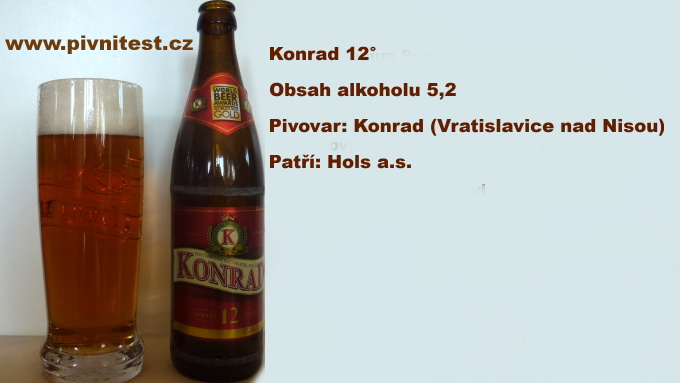 Konrád, kurňa Konrád. Podještědské pivo z Vratislavic nad Nisou. Původní název piva byl Vratislav a to bylo (možná ještě je) pro část libereckých pivařů nespolknutelný problém. Jelikož po zakoupení pivovaru pražákama se přejmenoval pivovar i pivo na Konrád a hned byl oheň na zátce. Spousta skalních příznivců piva Vratislav už ke Konrádu ani svůj pohled nenasměrovalo,že prej je to hnus,nebo že se to nedá chlemtat, natož pít a tak dále. Mě to ale neva a i přes to,že jsem pivo Vratislav měl točené a i lahvové, nebudu Konráda zavrhovat a proto jsem otestoval 0,5l Konrád - světlý ležák - dvanáctku s voltáží 5,2% za 9,90 Kč a to je kurňa dobrý! V půllitru se vznášela krásná, hustá bílá pěna na tmavě zrzavém pivním moku. No prostě radost se na to jen koukat. Po třetím už mě ale vzhled absolutně nezajímá, chuť je sytá, skoro jako když si kousnete do uzeného bůčku a přikusujete smažený vepřový řízek. Jak dozajista chápete,nejde o chuť masa, ale o to, že chuť tohoto piva je opravdu sytá. Sice je na můj pivní vkus dosti hořké,ale dobře pitelné. Po vypití osmi lahvourů během pár hodin, jsem kromě mírné ztráty stability a dřevnatění jazyku nezaregistroval vážnější nežádoucí účinky a to jak po pozření, tak i druhý den po probuzení. Nedoporučuji požívat ve větším množství například při štípání dřeva, jelikož nástup alkoholového opojení přistupuje mílovými kroky a předpokládám, že mít zaseklou štípací fiskárku v holení kosti není zrovna velká zábava pro pobavení pracovního kolektivu.