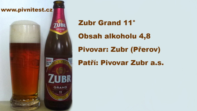 Jdu si jako vždy do lednice pro pivko, ale tam nenajdu ani jednoho natešenýho lahváče. Automaticky se otáčim vlevo otevírajíc dveře od špajzky, kde přece na mě ty kuželky vždy čekaj...... Jdou na mě mdloby..... Přede mnou na mě smutně kouká basa piv, bohužel bez víček... Prchám k autu a frčím do marketu.... Tak co dnes koupit k testu... Na první pohled mě zaujme Zubr Grand 11° a na druhý cena, z 13 vočí zlevněno na 8. Nic dalšího mě momentálně nezajímá. Z prozíravosti strkám do basy i dvě chlazené. Přece to nebudu lemtat teplý. Rychle zaplatit a pryč odtud, lednice čeká, o sobě ani nemluvím.